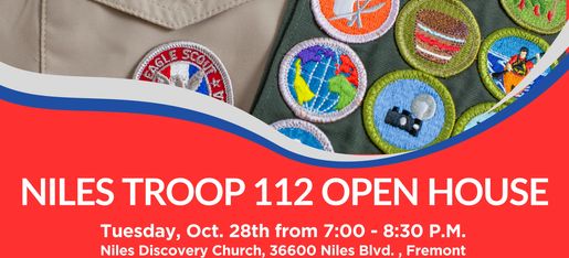 Based at Niles Discovery Church, Troop 112 is boy-led and adult-supported. Scouts are in charge of planning meetings, campouts, hikes, service projects, and troop and patrol activities. As we are a smaller troop, there are plenty of ways to get involved in leadership roles required for rank advancement. In addition, we make Board of Advancement opportunities available regularly so scouts are not delayed in their advancement.